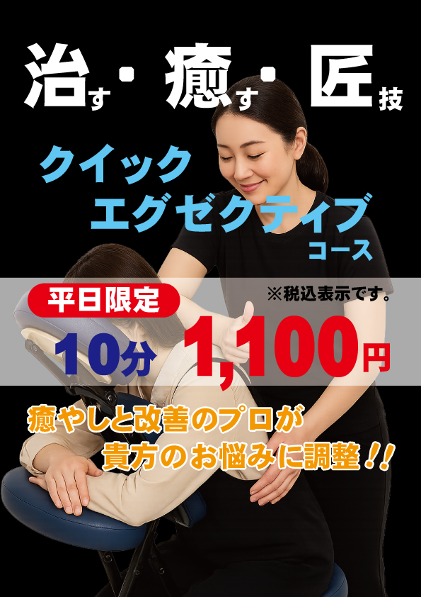 こんにちは、10月から首肩のピンポイントのクイックマッサージが始まります!